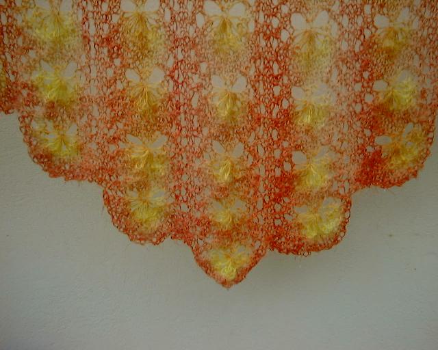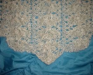 Voici l'ouvrage réalisé avec le mohair de florence. Je voulais faire un châle mais au final la forme est entre l'écharpe et le châle, bon, ça change ! |