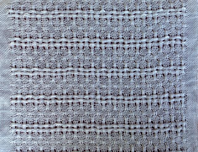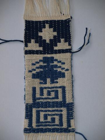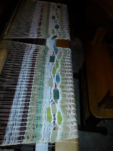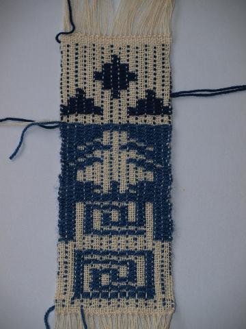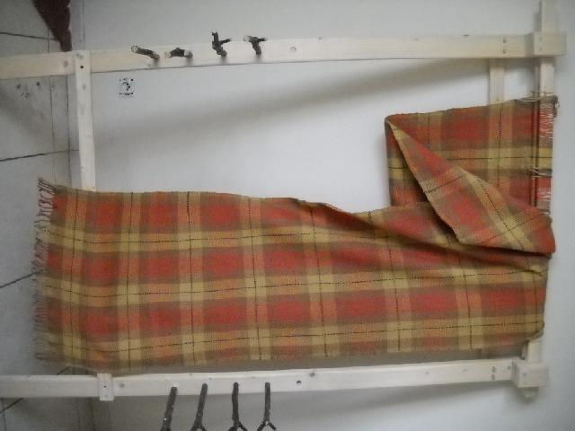 tissage sergé diagonale sur un métier à pesons gallo-romain "bricolé". Dimensions 60 cm environ X 3m. |