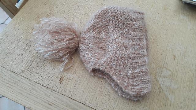 J'ai utilisé 1 pelote de mohair avec mon premier écheveau d'alpaga filée main. Ce modèle, très facile à réaliser tient bien chaud aux oreilles ! |