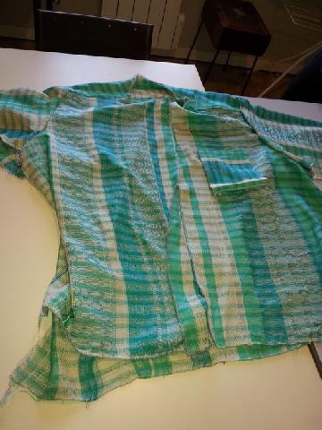 Le collègue adhérent prépare sa chemise cette fois il n'a pas fabriqué son tissu, pour une suivante il y réfléchit |