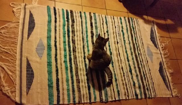 le voila, en laine teintée végétale - nerprun, gaude, indigo fermenté maison a partir de henne noir, et couleur naturelle (alpaga marron) trame coton |