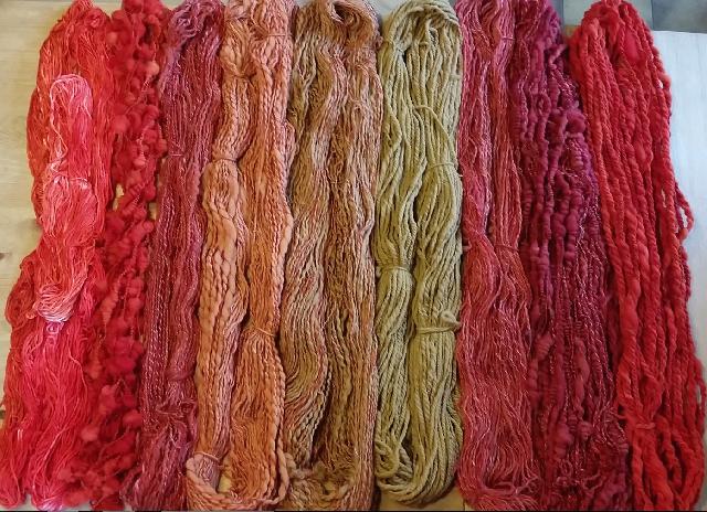 1 kg de laine, mohair soie... garance, lichen, et teintures acides... filage fantaisie |