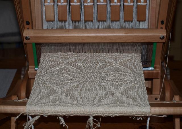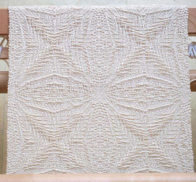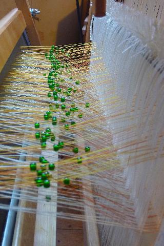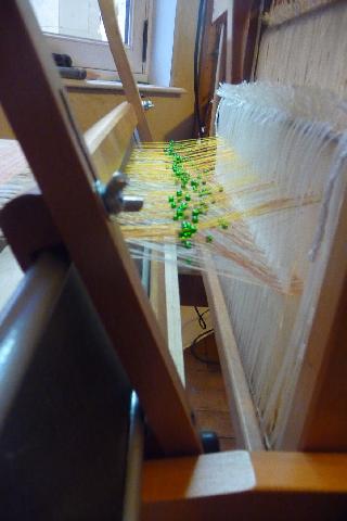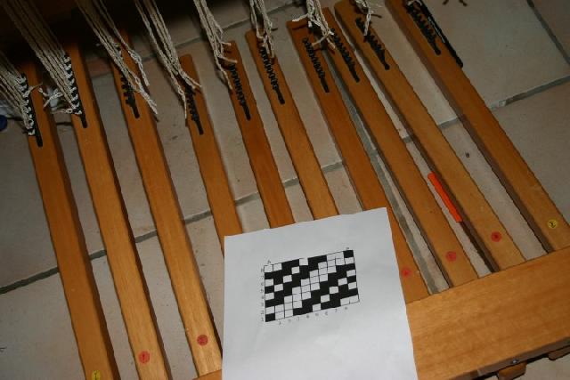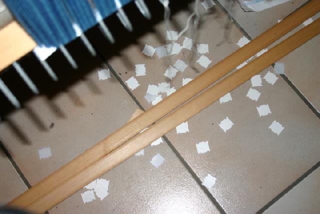 Voici les petites séparations qui se mettent entre les agrafes à chaque passage de la chaîne lors de l'ourdissage direct. |