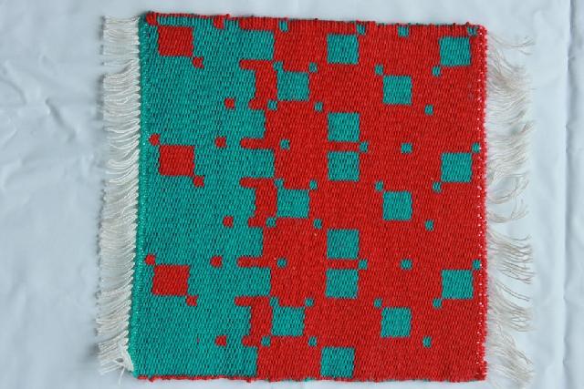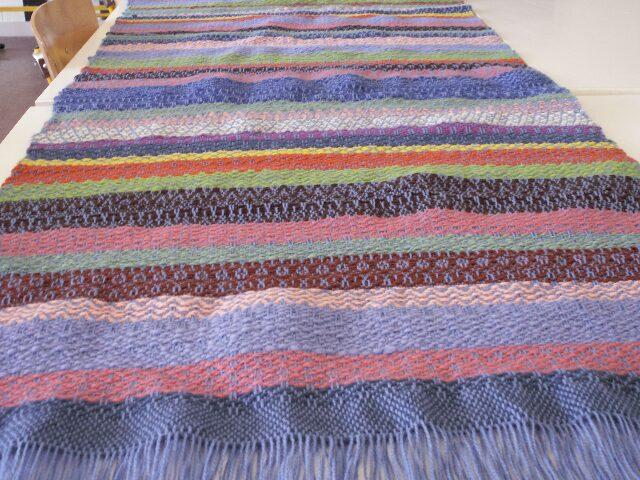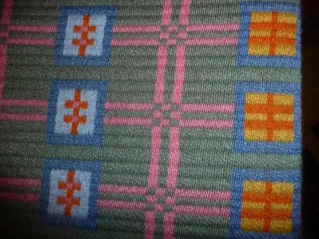 ici, on voit un peu que chaque trame passe sur un seul cadre levé. Pour passer sur tous les fils de chaîne, il faut lever alternativement tous les cadres |
