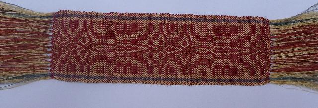 Un marque page en soie... Double tissu, le recto verso est en positif/négatif. Rouge d'un côté, "or" de l'autre |