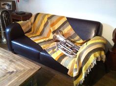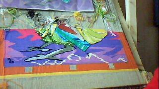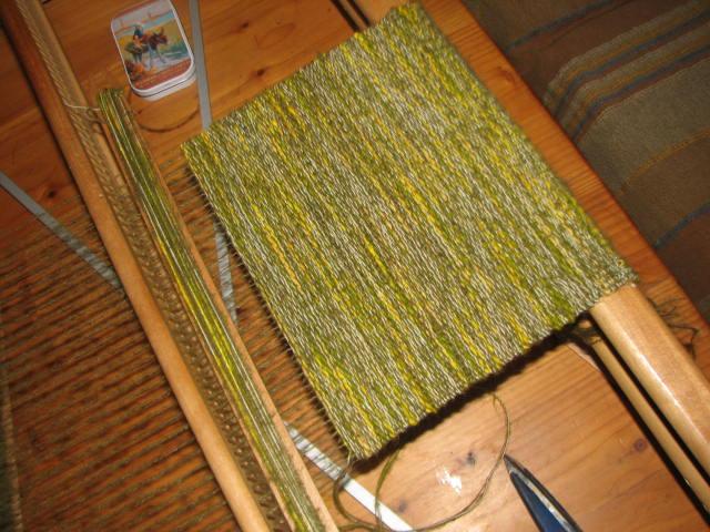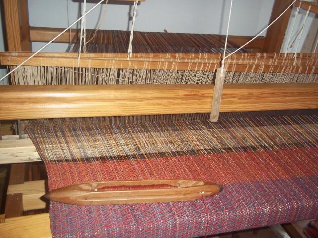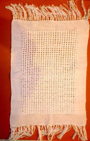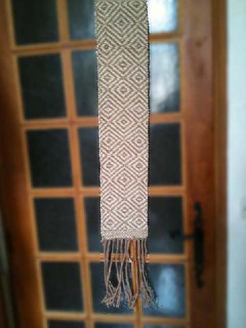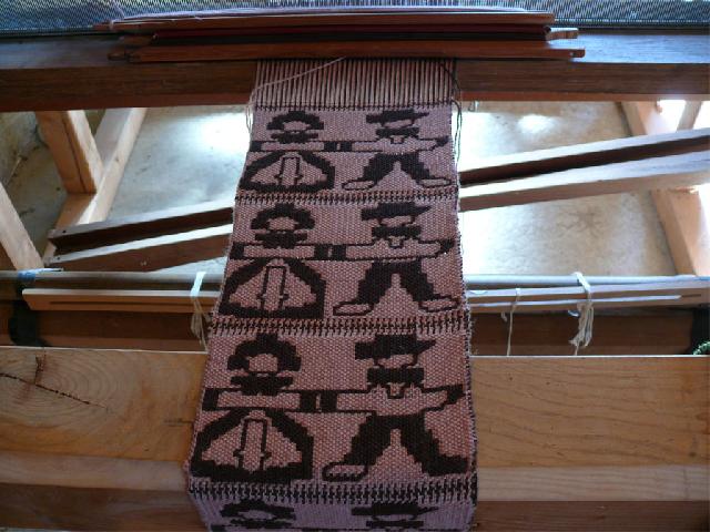motif réalisé en double chaîne: une chaîne de fond vieux rose et une chaîne de motif en brun. |