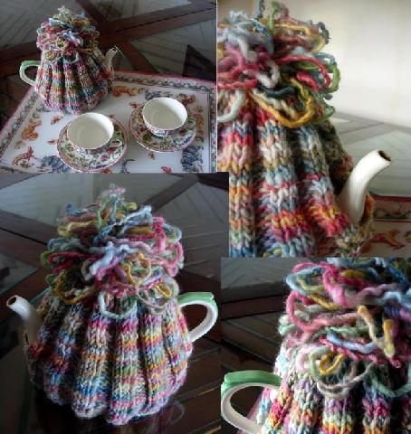 Cache-théière en laine élastique "Jardin imaginaire" (présentée dans la section "Laines filées") |