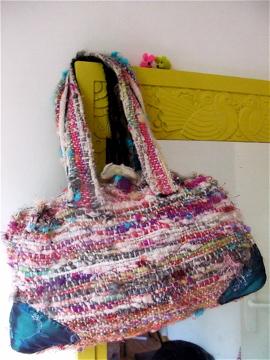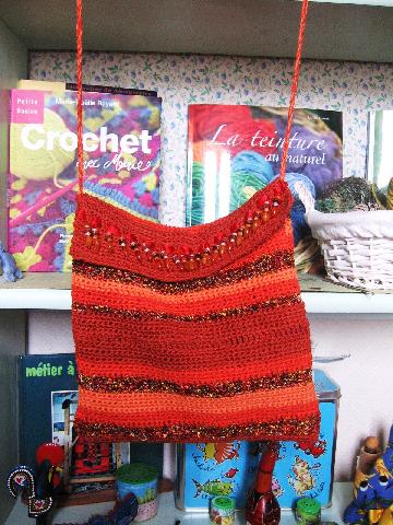 sac réalisé au crochet n°3,5 avec du coton marque(SENSO). le modèle a été inventé par mes soins et je me suis bien amusée |