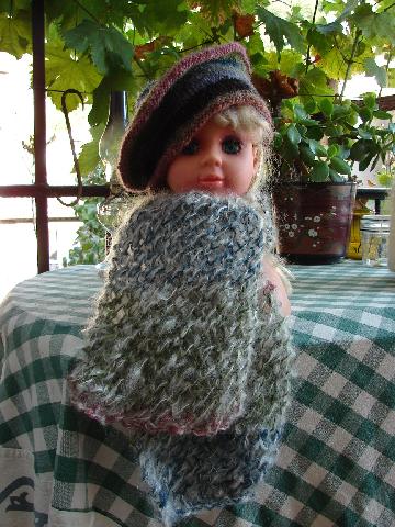 pour l'écharpe j'ai doublé avec un fil mohair du commerce pour plus de douceur |