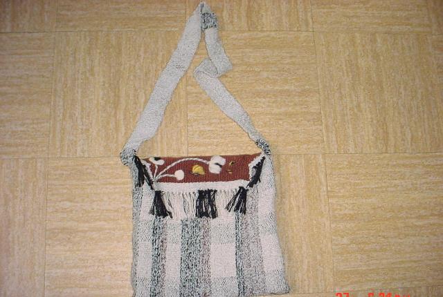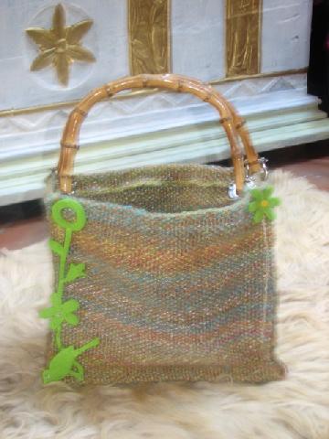 on doit avoir eu la même idée en même temps! (les grands esprits...) j'ai fait un petit sac avec la toison feutrée de "Tache", nettement moins coloré que celui de Joëlle, et moins doux aussi...... |