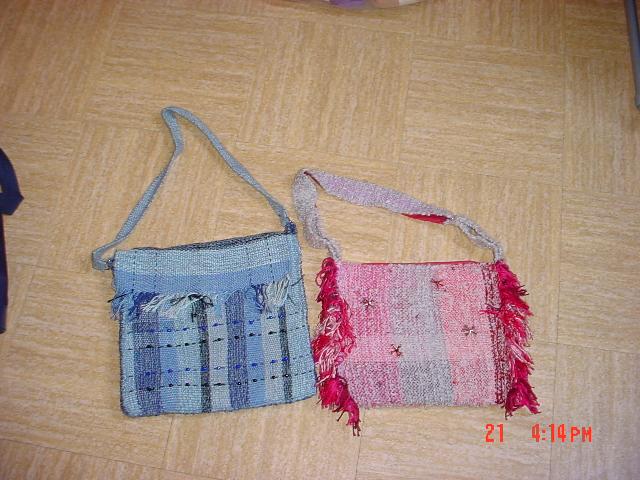 je débute tout doucement avec des restes de laine pour le sac rose et de coton pour le bleu,le plus long ceux sont les finitions |