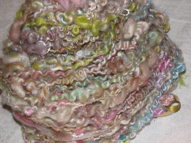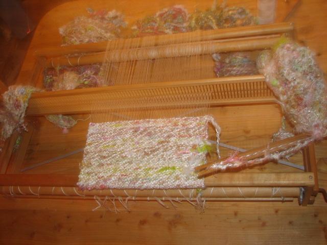 vu de prés des lisières ainsi que du bonnet crocheté dans le même fil et de l'écharpe assortie |