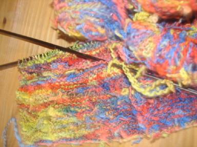 voici la photo du fil fantaisie à snarls en cours de tricotage. |
