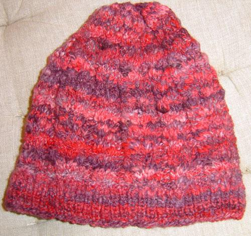 Bonnet tricoté avec le fil de Xaine lors de l'échange de la saint valentin |