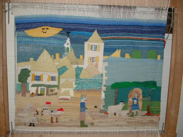 modèle de bergère de France, tricoté par ma mère avec mes écheveaux de chiens filés (plein de toutous différents) : |