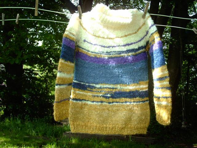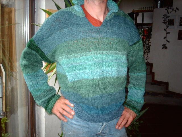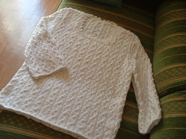 je viens de terminer mon pull lys commencer il y a une quinzaine de jours modele de ma creation |