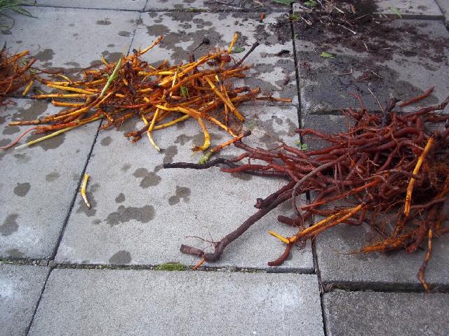 les racines prélevées sont rincées et triées: les plus anciennes sont plus rouges |