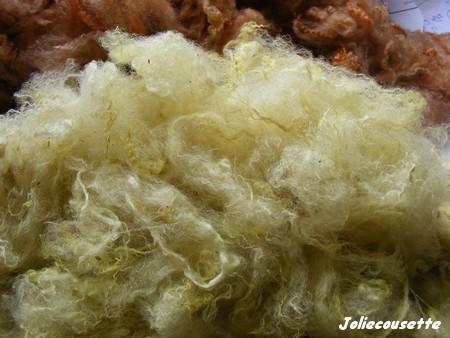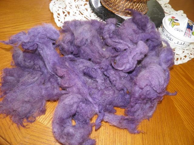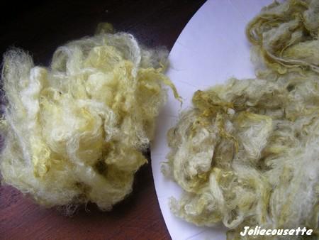 une pincée de sulfate de cuivre ajoutée en fin de cuisson et j'ai laissé refroidir ma laine dans la préparation |
