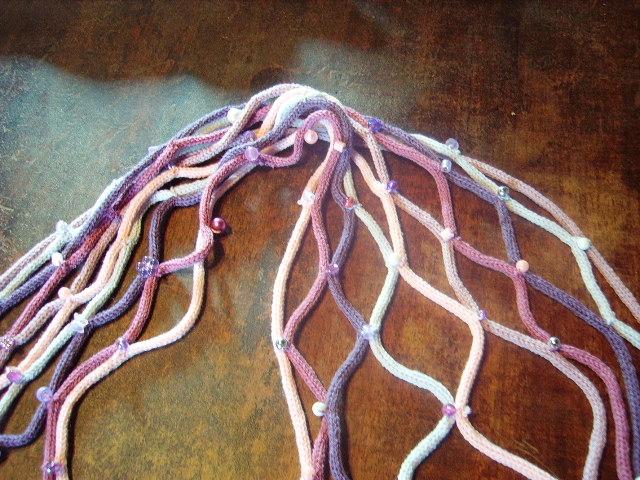 ce dimanche, j'avais envie d'adapter un modèle du commerce aux matériaux que j'avais sous la main. Le résultat est un peu kitch mais quand même très rigolo et surtout très sympa à faire. Je pense qu' à l'occasion j'en referai une avec des perles plus jolies |