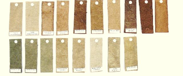 En haut le rocou sur soie et lin, en bas à gauche l'oeillet d'inde et à droite l'oignon |