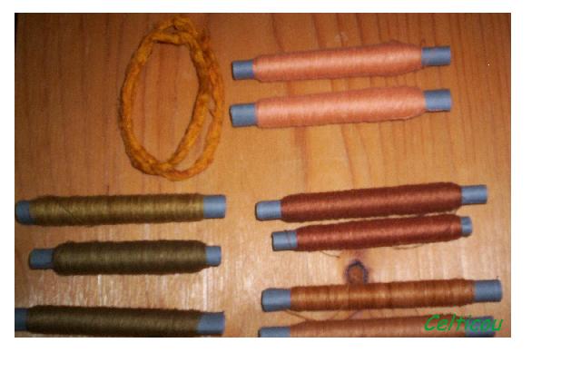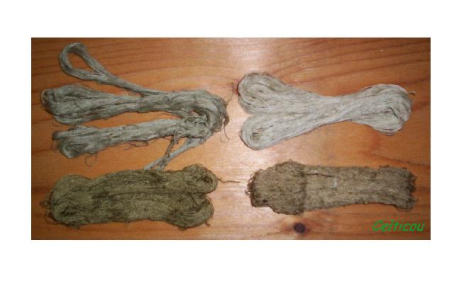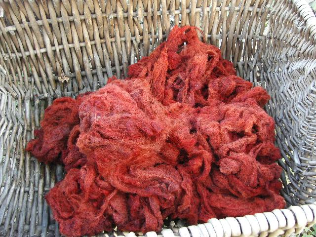 lin teint a la garance a chaud mordant alun, crème de tartre, cristaux de soude |