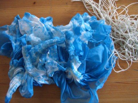 teintures sennelier fixées à la vapeur : bleu indigo, bleu saphir, ardoise, gris acier, turquoise + une pointe de rouge foncé selon les précieux conseils de monique!!! |