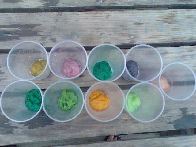 voici les 1° essais de teinture vahiné et dylon par ma nièce Audrey(10 ans) |