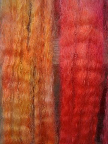 mohair hyper long cardé à la main, puis machine et teind à l'étuvée par Florence