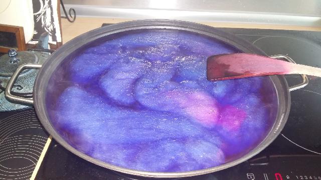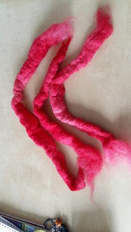 laine teinte rouge pompier dégorgée et feutrée |