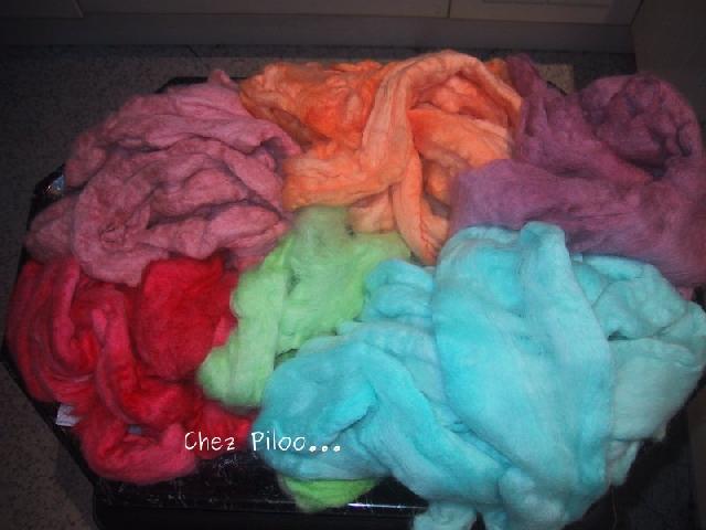 Je n'ai utilisé que les 3 primaires pour réaliser ces teintures, et à chaques fois il y a les 3 primaires dans les couleurs. |