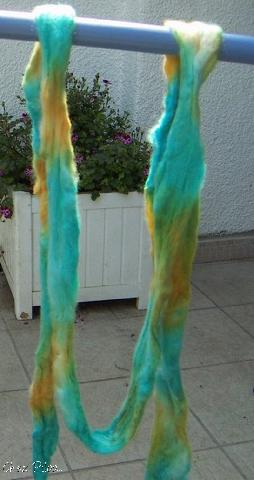 Colorants de pâtissier sur de la laine: technique sous pression. par Monique
