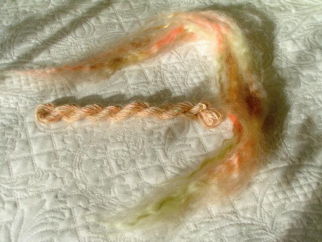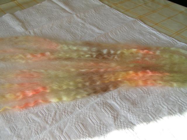 J'ai dilué du jaune, du orange, du vert vif et du marron. Mais ça fuse moins que le teinture alimentaire. Ca vient du mohair ou de la teinture ? |