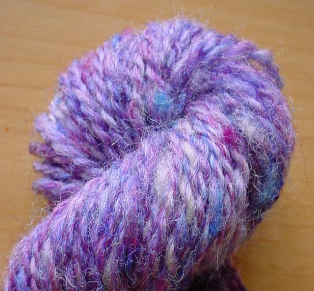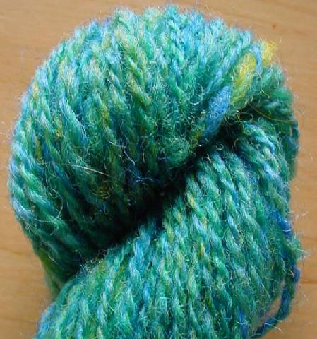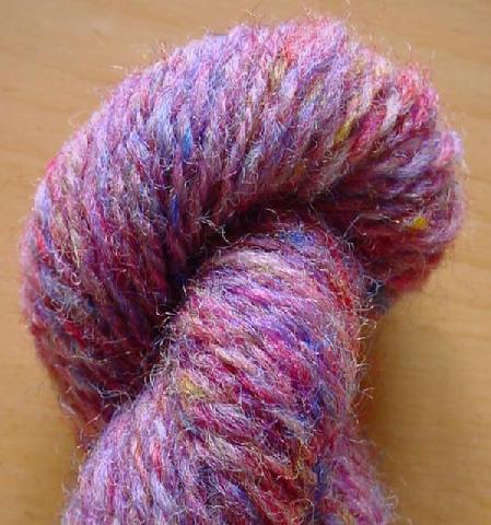 J'ai teint des mèches de mérinos de l'est, avec en tout 6 couleurs (bleu roi, rouge impérial, rose fuchsia, vert émeraude, jaune soleil, mauve), mais j'ai fait de l'uni (autant que possible sur des mèches non cardées, la teinture n'a pas pénétré les fibres uniformément). |
