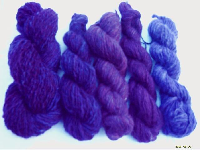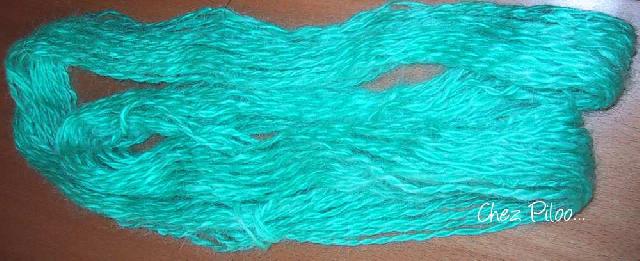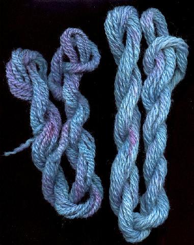 Essais:Teinture sur fils retordu 2 brins: 1 bloqué, et 1 non bloqué. par Monique
