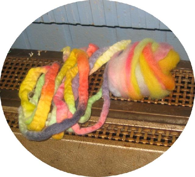 quelques essais de retors et fils fantaisies avec les teintures alimentaires |