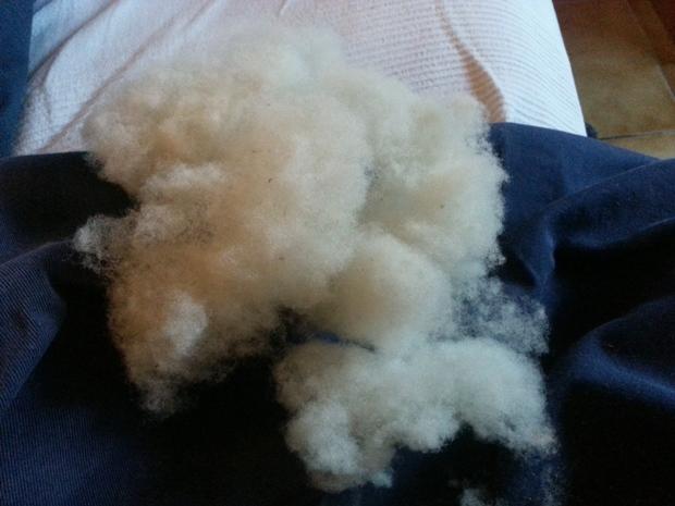 Elle n'est que lavée à l'eau fraîche et ensuite cardée aux peignes. |