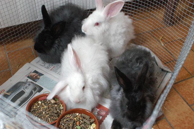 A leur arrivée chez nous. A gauche c'est Sofi, derrière en blanc c'est Kiki, devant en blanc c'est Yuki, et à droite c'est Mei. |