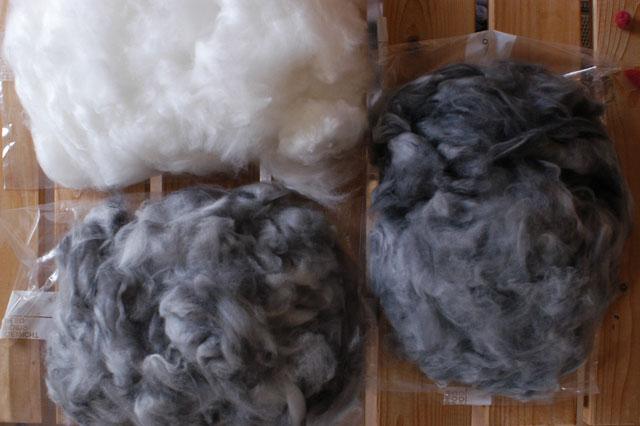 voici donc ce mélange alpaga, mérinos de Rambouillet, avec le mohair, l'angora et le Kerry de chez moi ces 3 derniers. |