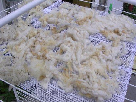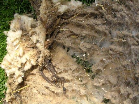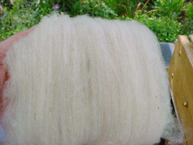 Nappe de rambouillet, le résultat obtenu après deux passages dans la cardeuse Strauch et sélection sévère des mèches. |