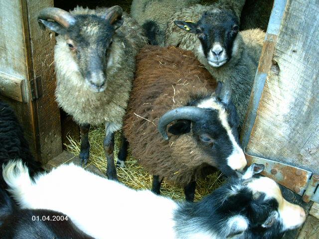 Voici 2 agneaux shetland qui finiront comme reproducteurs. Le brun est ce que l'on nomme la couleur "moorit", sa fibre est très fine. Pour le mâle gris, sa fibre est aussi très fine mais parsemée de légers poils de jarre. |