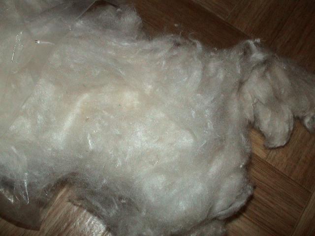 J'ai trouvé ça aujourd'hui chez Spycher, je pense que cela doit-êtee du kapock, c'est beige, doux au toucher, un peu crissant tout en étant duveteux |