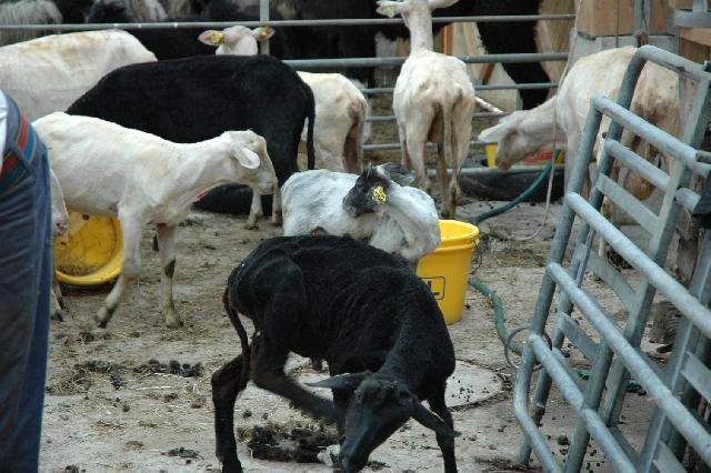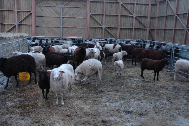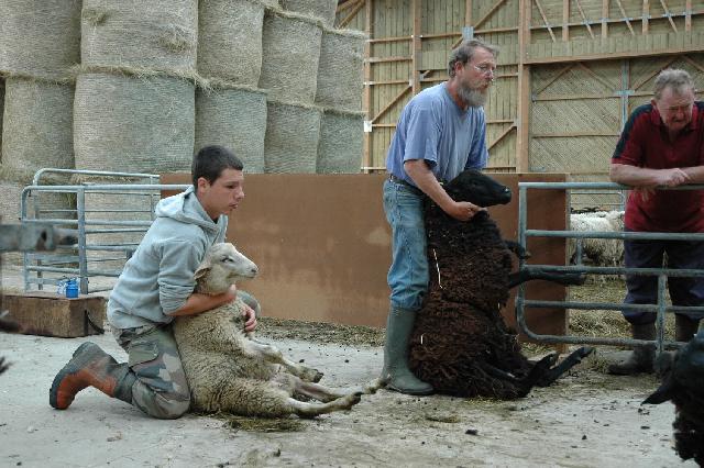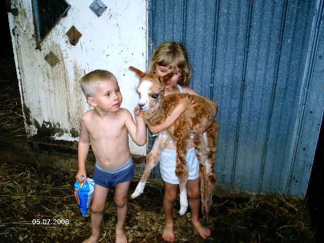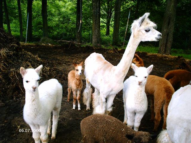 Voici Josée, la nouvelle maman qui a donné naissance au dernier cria de l'année. Il se nomme Lyon et est né le 4 juillet 2006(il est très petit). Josée est entourée des crias de l'année 2006. |