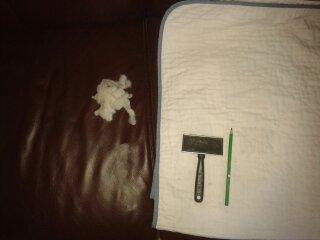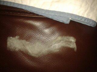 Résidus sous forme de petites miettes jaune pâle : suint ou lanoline ? |