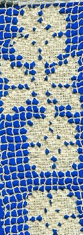 Réalisé en rond, selon la même technique que celle du filet à rebroder; les petites "mouches" sont faites en même temps que le filet. |