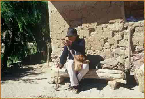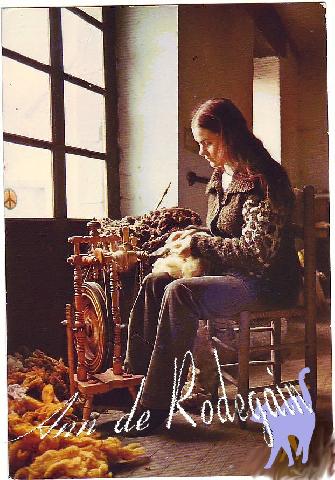 une copine de l'Arche, filant au rouet (remarquez le sigle dans le coin de la fenêtre !...) |