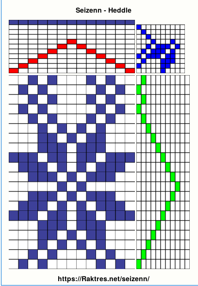 Je développe un petit logiciel pour dessiner des modèles de tissage. Il était initialement destiné au tissage simple de bandes, d'où son nom "seizenn", ruban en breton. Il est plus particulièrement étudié pour travailler sur les couleurs. Je l'étoffe petit à petit en fonction des différentes techniques que je découvre.